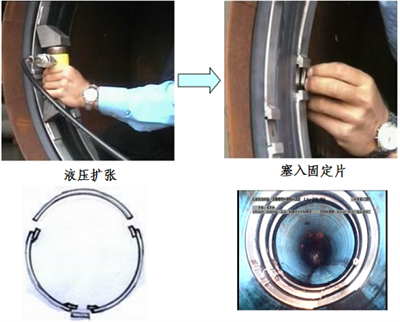 不锈钢发泡筒修复在管道局部破损点内安装一个外附海绵的不锈钢套筒,海绵吸附发泡胶。安装完成后发泡胶膨胀从而在旧管和不锈钢套筒之间形成密闭性接触,起到加强管道结构强度和堵水密封等作用。
