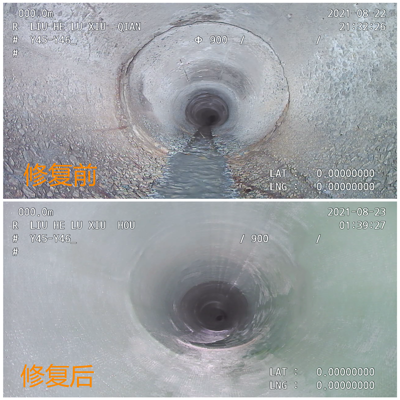 CIPP水翻转修复前后对比